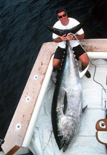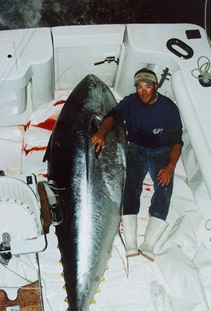 Giant fishing...there truly is no substitute. If it's big fish and breathtaking adrenalin that you're after than look no further. The giant bluefin are one of the biggest and meanest gamefish in the ocean...end of story. These monster fish are known to wreak havoc on the will and stregnth of even the most seasoned angler. After all, they do average 500 pounds, and regularly run as big as 1500. Nothing quite compares to the sight of a 9 foot fish staring up at you from beneath the depths!