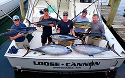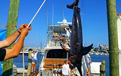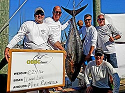 The OBBC has created an all new Bluefin Tuna Category. This will offer boats some newly added bluefin tuna prize divisions. The OBBC will offer a 1st place trophy for the heaviest bluefin (commercial quota/73" or greater), a 1st place trophy for the heaviest bluefin (rec quota 72" and under) and a trophy prize for most bluefin caught. Participating boats must abide by state and federal regulations. Boat size divisions will not be applicable to bluefin catches in the OBBC. For bluefin tuna only, harpoons will be allowed. Fighting from the rod holder and passing the rod will be allowed. As a result, bluefin tuna will no longer count for points in the OBBC. It is simply a separate competition category. Please visit the rules page for additional information.